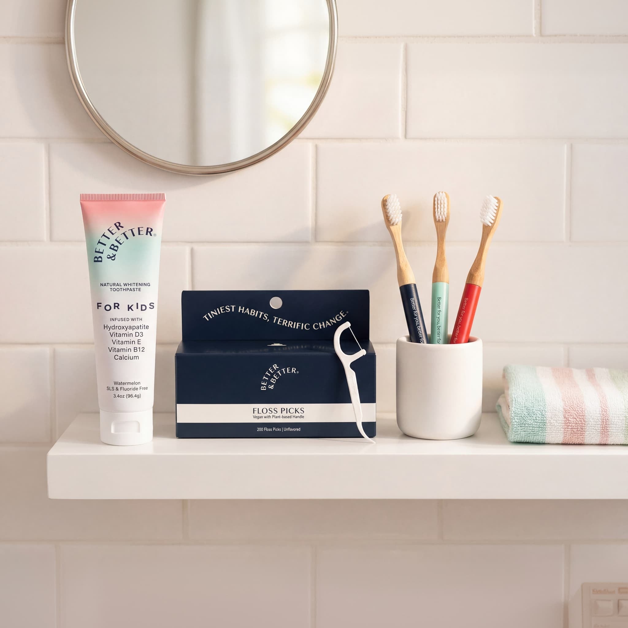 No more sad mouths from harsh mint! Natural watermelon flavor makes brushing fun and enjoyable for your kids, turning a daily chore into a treat. By using a flavor they love, Better & Better toothpaste encourages kids to brush more consistently and for longer—helping build healthy habits early!
