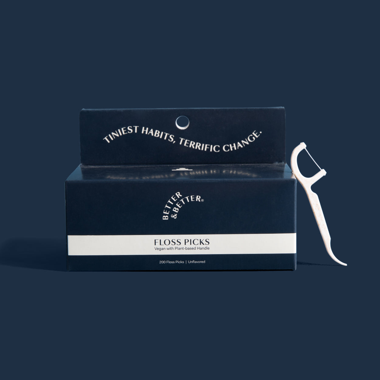 Our flossers make it easy to floss on the fly – with a biodegradable handle that's better for the planet than those petroleum plastic picks you're used to.