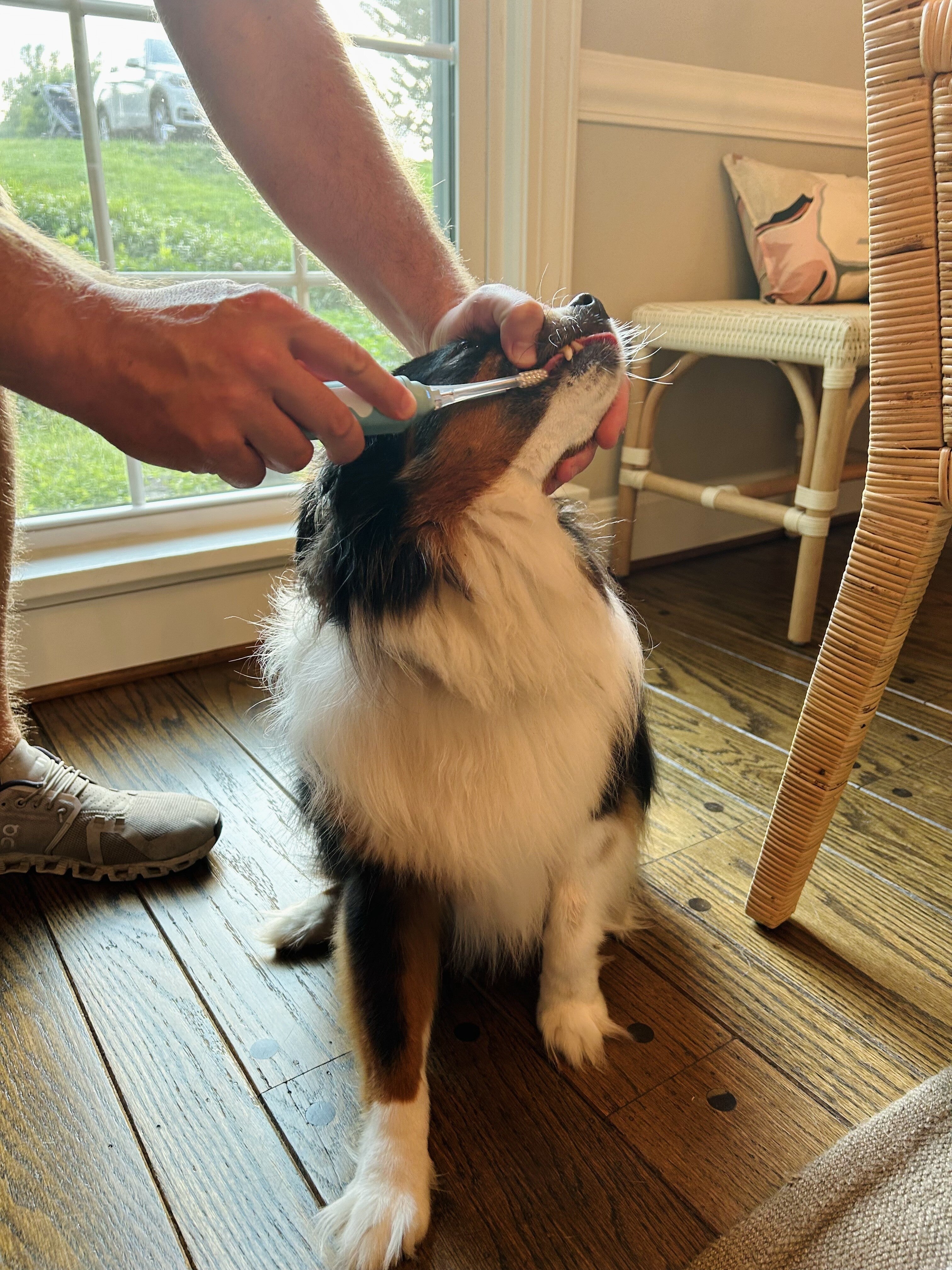 The revolutionary toothbrush for dogs, powered by safe and effective electrolytic technology. No toothpaste needed. No sounds or vibrations.